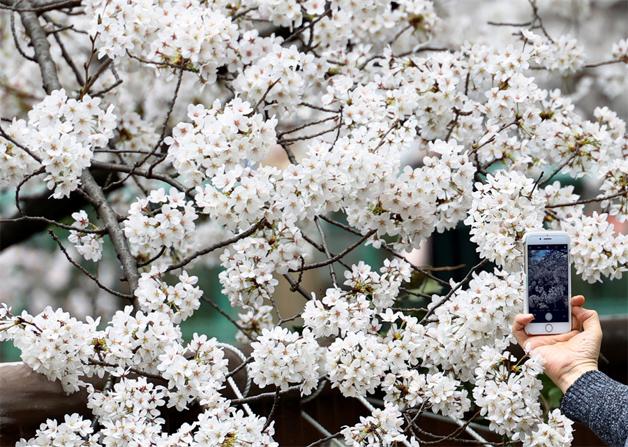 人民網(wǎng)訊 當?shù)貢r間3月27日,日本東京河岸邊櫻花盛開,賞櫻人流如織。