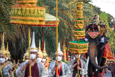 4月13日,在泰國大城府,演員參加街頭巡游活動慶祝宋干節(jié)。