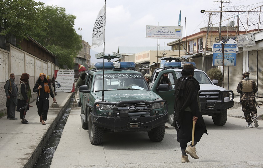 這是4月19日阿富汗塔利班人員在遭爆炸襲擊的一所高中附近執(zhí)勤。