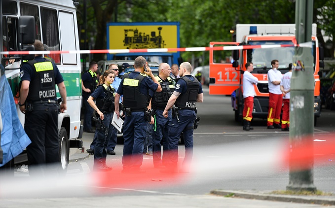 6月8日,警察在德國柏林車輛沖入人群事件現(xiàn)場(chǎng)工作。