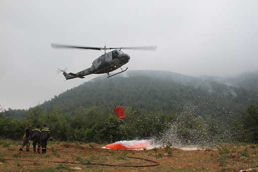6月8日,一架軍用直升機在黎巴嫩北部的丹尼耶地區(qū)進行滅火作業(yè)。