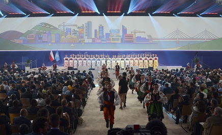 6月27日,在波蘭卡托維茲,演員在第11屆世界城市論壇開幕式上表演。