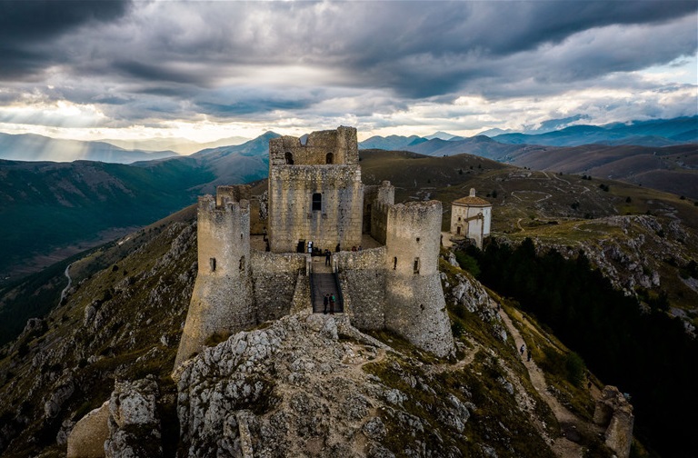 當?shù)貢r間9月2日,意大利羅卡卡拉西奧城堡,航拍景色巍峨壯觀美麗如畫。
