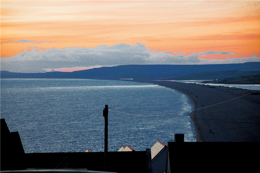 當(dāng)?shù)貢r(shí)間9月23日,英國多塞特郡,秋天萊姆灣的日落絢麗多彩。