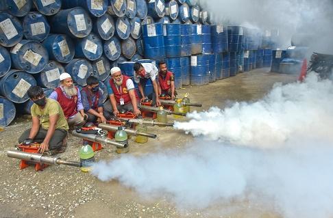 7月16日,工作人員在孟加拉國(guó)達(dá)卡進(jìn)行滅蚊工作,以預(yù)防登革熱。新華社發(fā)