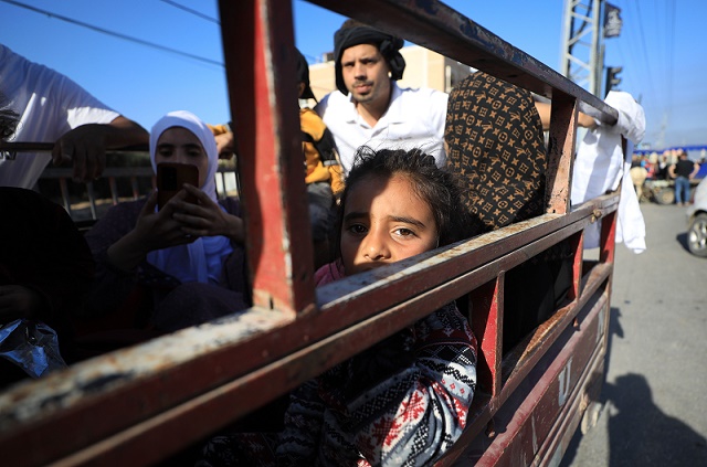 11月7日,在加沙地帶中部地區(qū),巴勒斯坦人向南部遷移。新華社發(fā)(亞西爾·庫(kù)迪攝)
