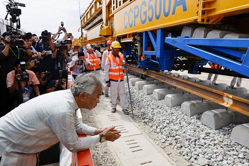 由中國交通建設(shè)集團有限公司承建的馬來西亞東海岸鐵路(馬東鐵)項目軌道工程啟動儀式12月11日在馬來西亞彭亨州首府關(guān)丹市舉行。馬來西亞最高元首阿卜杜拉在儀式上正式啟動馬東鐵項目軌道鋪設(shè)。