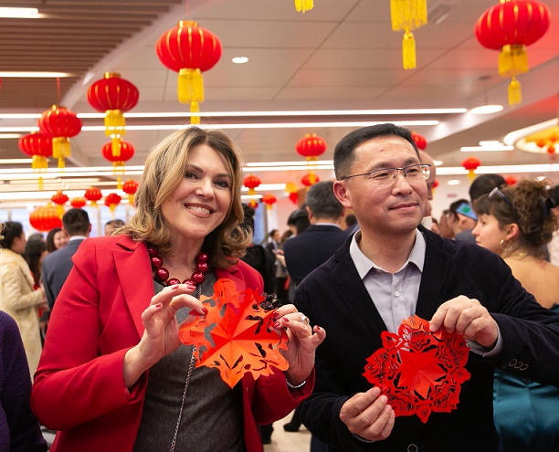 聯(lián)合國糧食及農(nóng)業(yè)組織(糧農(nóng)組織)2月2日晚在意大利首都羅馬糧農(nóng)組織總部舉辦中國農(nóng)歷春節(jié)招待會。多國駐意外交人員、意大利官員及糧農(nóng)組織工作人員齊聚一堂,歡慶佳節(jié)。據(jù)糧農(nóng)組織介紹,這是該聯(lián)合國機(jī)構(gòu)首次正式慶祝中國農(nóng)歷春節(jié)?;顒蝇F(xiàn)場布置了富有中國文化特色的大紅燈籠和其他傳統(tǒng)春節(jié)裝飾,呈現(xiàn)一派熱鬧祥和的氛圍。