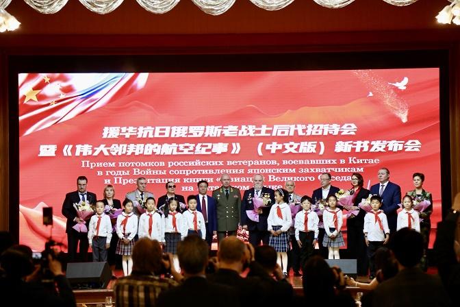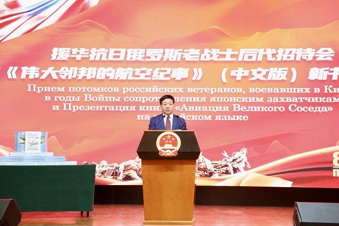 4月18日,中國(guó)駐俄羅斯大使館舉辦援華抗日俄羅斯老戰(zhàn)士后代招待會(huì)暨《偉大鄰邦的航空紀(jì)事》(中文版)新書發(fā)布會(huì)。中國(guó)駐俄羅斯大使張漢暉、俄羅斯國(guó)防部副部長(zhǎng)福明、俄羅斯總統(tǒng)辦公廳公共關(guān)系和傳媒局局長(zhǎng)斯米爾諾夫、崔可夫元帥之孫尼古拉?崔可夫等援華抗日老戰(zhàn)士后代代表,俄政界、軍界、學(xué)者、媒體、民間機(jī)構(gòu)代表等400余人出席。