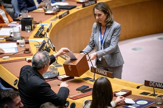 5月27日,在位于紐約的聯(lián)合國(guó)總部,聯(lián)合國(guó)安理會(huì)投票補(bǔ)選國(guó)際法院法官。新華社發(fā)(聯(lián)合國(guó)供圖/洛伊·費(fèi)利佩攝)