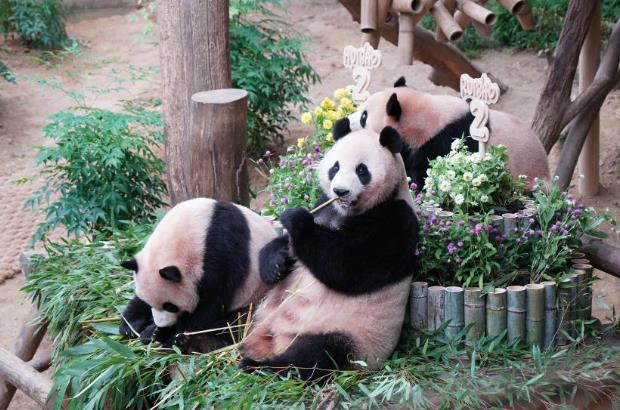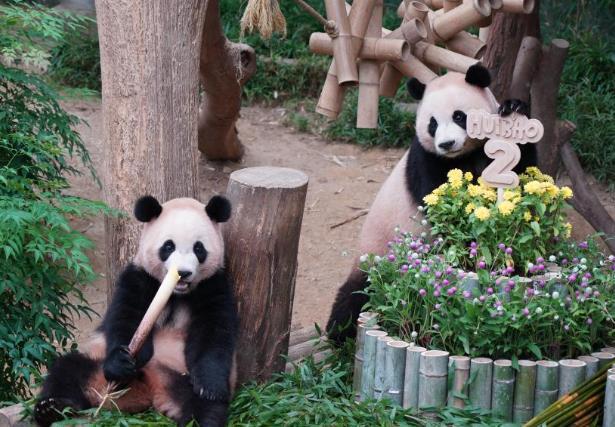 愛寶樂園為雙胞胎大熊貓準備了用竹子制成的大型生日蛋糕,生日禮物則包括清涼的冰床和各類用竹子制成的“豐容”玩具等。據(jù)愛寶樂園方面介紹,雙胞胎出生時體重分別只有180克和140克,如今體重都已接近70公斤。