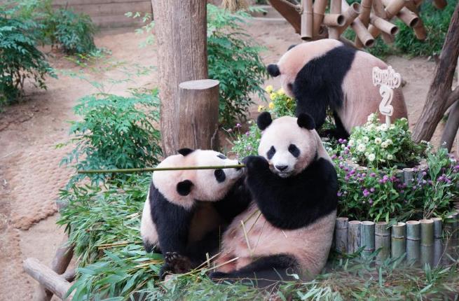 愛寶樂園大熊貓飼養(yǎng)員姜哲遠在慶生活動上說,這是“睿寶”和“輝寶”與媽媽“愛寶”一起過的最后一個生日。根據(jù)大熊貓的生長習性,它們在1歲半至2歲后將離開媽媽,開始獨立生活。在逐步進行適應訓練后,“睿寶”和“輝寶”有望于今年9月在新場館單獨與游客見面。