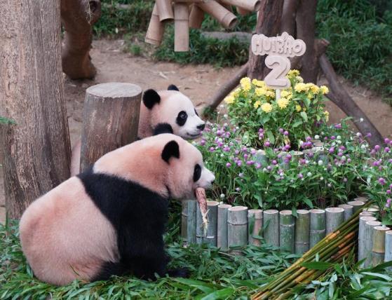 新華社韓國龍仁7月7日電(記者陳怡)在韓國誕生的雙胞胎大熊貓“睿寶”和“輝寶”7日迎來兩周歲生日,韓國愛寶樂園為它們舉行慶生活動。