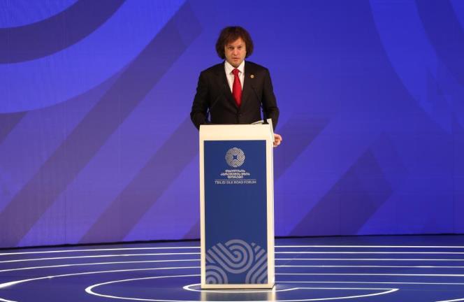 10月22日,格魯吉亞總理科巴希澤在首都第比利斯舉行的第五屆第比利斯絲綢之路國際論壇期間表示,共建“一帶一路”對格魯吉亞具有重要意義。在共建“一帶一路”框架下,格魯吉亞的互聯(lián)互通能力不斷增強,對華經(jīng)貿(mào)合作持續(xù)擴大。新華社發(fā)(格魯吉亞政府供圖)