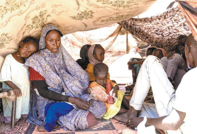 圖為在蘇丹北達爾富爾州塔維拉鎮(zhèn),流離失所者在一處用樹枝和布料搭建的簡易帳篷下休息。 新華社發(fā)