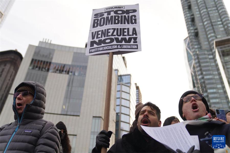 紐約民眾抗議美國(guó)空襲委內(nèi)瑞拉