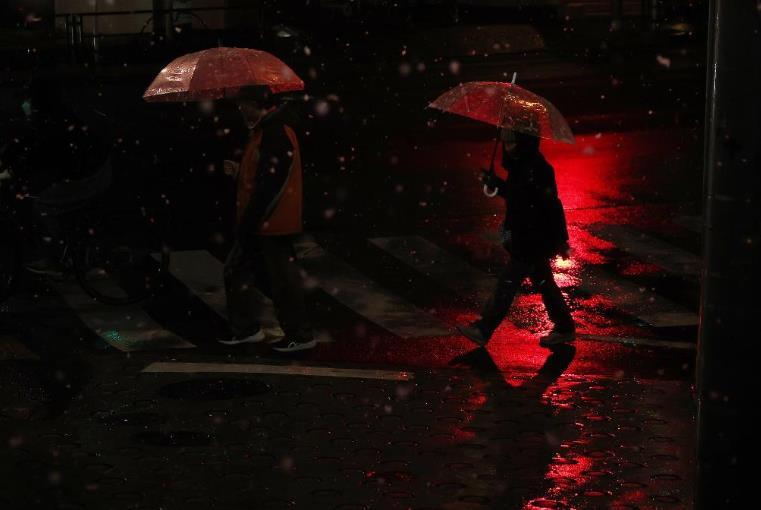 1月2日,行人撐傘走在日本東京街頭。當(dāng)日,受冷空氣影響,日本東京降下2026年第一場雪。新華社記者賈浩成攝
