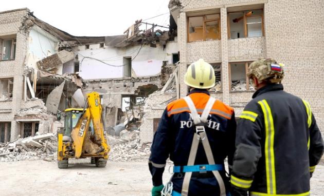 烏克蘭危機延宕至今,已逾四年時間。圖為當?shù)貢r間3月16日,頓涅茨克地區(qū)曼古什鎮(zhèn),一棟郵局建筑在無人機襲擊后部分坍塌。 CFP供圖