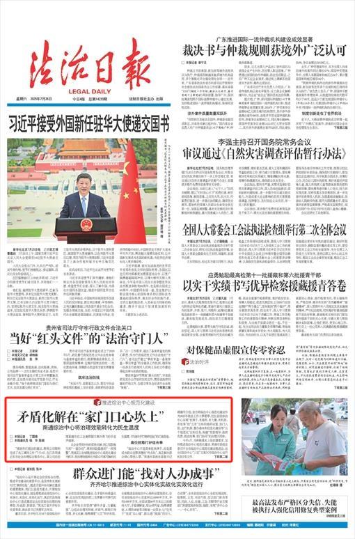 今年4月,為積極落實上級部署要求,加快推進綜治中心規(guī)范化建設(shè),南通市委政法委召開全市綜治中心規(guī)范化建設(shè)推進會,出臺《綜治中心“三定”文案》《市綜治中心運行機制》等文件,完善《縣級綜治中心“線上+線下”矛盾糾紛多元化解業(yè)務(wù)流程圖》,激活“調(diào)解優(yōu)先、分層遞進、司法兜底”多元共治解紛效能。目前,群眾訴求平均辦結(jié)時限已壓縮至7.2天,重復(fù)走訪率下降了63%。