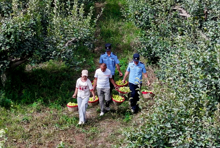 金秋時(shí)節(jié),塔里木盆地北緣的“梨城”新疆庫爾勒市迎來香梨豐收季。田間果園,掛滿枝頭的香梨飄香四溢,穿梭其間的除了果農(nóng)和客商,還有一群藏藍(lán)身影——他們正是庫爾勒市公安局推行“梨香警務(wù)”機(jī)制、全力護(hù)航鄉(xiāng)村振興的公安民警。