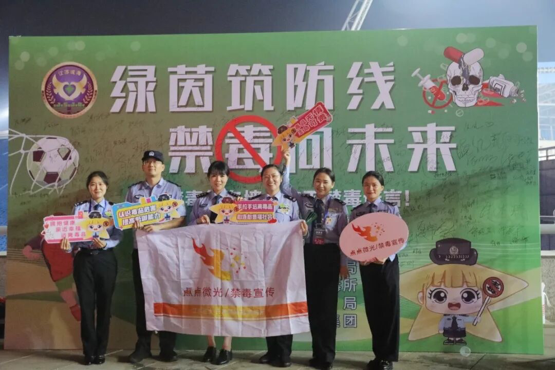 賽前球迷互動(dòng)區(qū)里,江蘇省女子強(qiáng)制隔離戒毒所“點(diǎn)點(diǎn)微光”禁毒宣傳團(tuán)隊(duì)積極行動(dòng),聯(lián)合鎮(zhèn)江市體育局、鎮(zhèn)江市文化廣電和旅游局、鎮(zhèn)江市文化廣電產(chǎn)業(yè)集團(tuán)等單位,為鎮(zhèn)江、無錫球迷送上禁毒知識(shí)和禁毒文創(chuàng)。“點(diǎn)點(diǎn)微光”禁毒宣傳吉祥物“星星”也驚喜現(xiàn)身,與球迷代表在禁毒宣誓墻上寫下禁毒承諾,共同喊出“鎮(zhèn)江無錫,共筑防線”的青春無毒誓言。