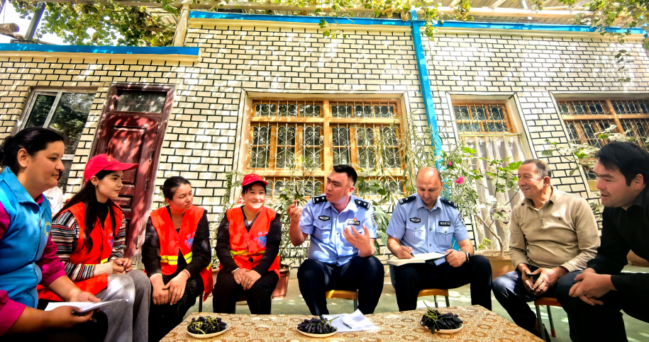 “石榴大媽”志愿服務(wù)隊(duì)由全國“楓橋式公安派出所”、葉城縣公安局伯西熱克派出所組建,900余名志愿者奔走于全鎮(zhèn)19個村,走出一條在“家門口”排憂解難的新路子。