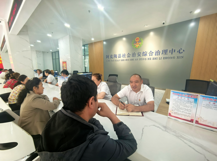 圖為阿克陶縣綜治中心工作人員正在接待來訪群眾。潘從武 攝