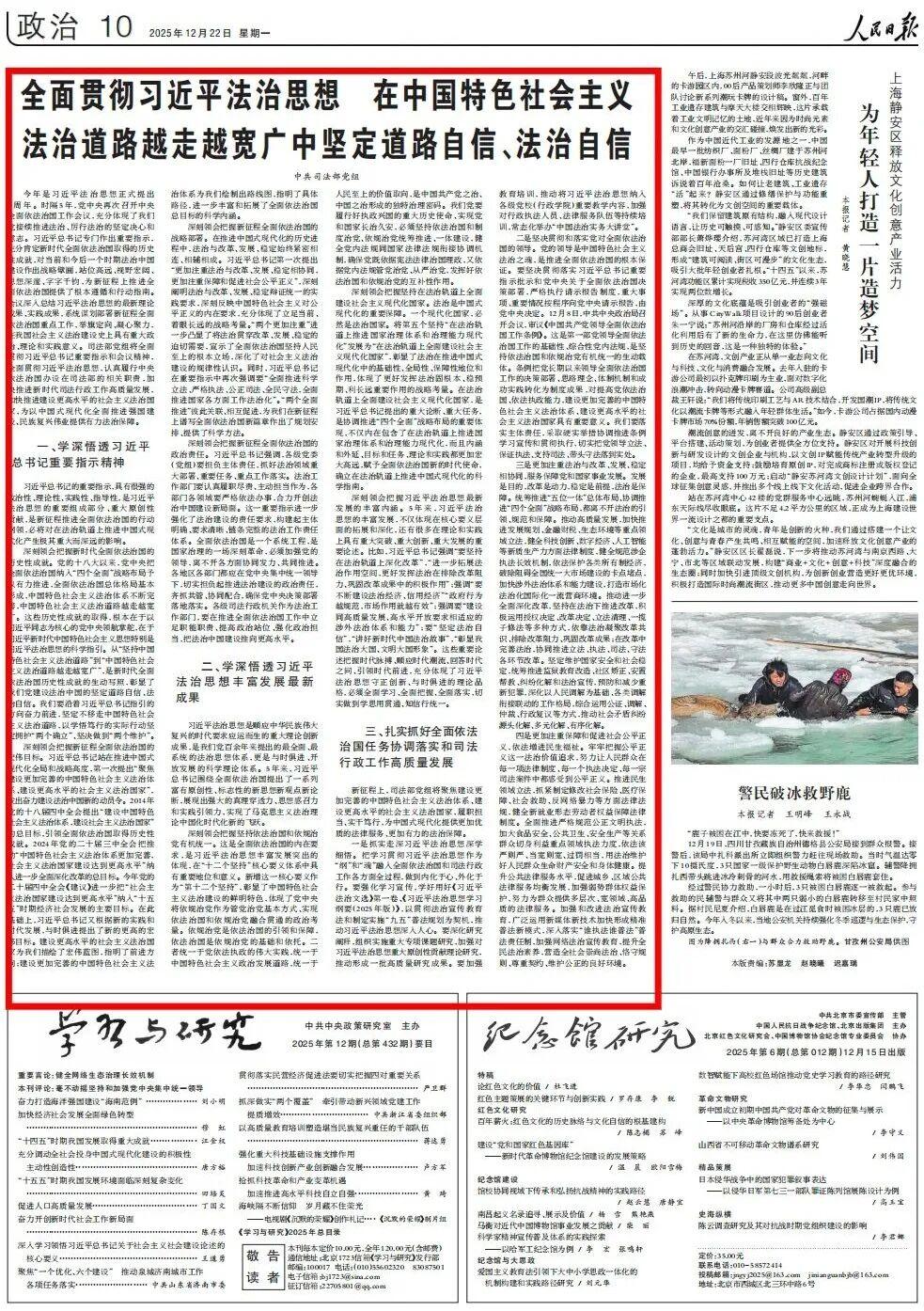 深刻領(lǐng)會(huì)把握新征程全面依法治國(guó)的宏偉目標(biāo)。習(xí)近平總書(shū)記站在推進(jìn)中國(guó)式現(xiàn)代化全局和戰(zhàn)略高度,第一次提出“聚焦建設(shè)更加完善的中國(guó)特色社會(huì)主義法治體系、建設(shè)更高水平的社會(huì)主義法治國(guó)家”,發(fā)出奮力建設(shè)法治中國(guó)新的動(dòng)員令。2014年黨的十八屆四中全會(huì)提出“建設(shè)中國(guó)特色社會(huì)主義法治體系,建設(shè)社會(huì)主義法治國(guó)家”的總目標(biāo),引領(lǐng)全面依法治國(guó)取得歷史性成就。2024年黨的二十屆三中全會(huì)把推動(dòng)“中國(guó)特色社會(huì)主義法治體系更加完善,社會(huì)主義法治國(guó)家建設(shè)達(dá)到更高水平”納入進(jìn)一步全面深化改革的總目標(biāo)。今年黨的二十屆四中全會(huì)《建議》進(jìn)一步把“社會(huì)主義法治國(guó)家建設(shè)達(dá)到更高水平”納入“十五五”時(shí)期經(jīng)濟(jì)社會(huì)發(fā)展的主要目標(biāo)。在此基礎(chǔ)上,習(xí)近平總書(shū)記又根據(jù)新的實(shí)踐和時(shí)代發(fā)展,與時(shí)俱進(jìn)提出了新的更高的宏偉目標(biāo)。建設(shè)更高水平的社會(huì)主義法治國(guó)家為我們描繪了宏偉藍(lán)圖,指明了前進(jìn)方向;建設(shè)更加完善的中國(guó)特色社會(huì)主義法治體系為我們繪制出路線(xiàn)圖,指明了具體路徑,進(jìn)一步豐富和拓展了全面依法治國(guó)總目標(biāo)的科學(xué)內(nèi)涵。