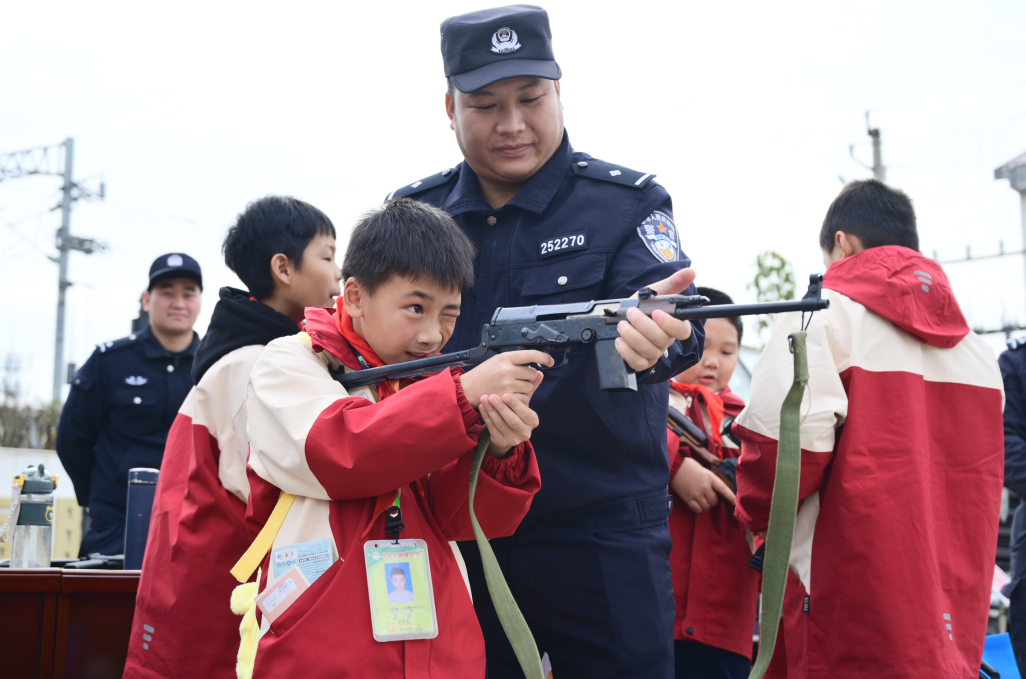 圖為民警指導(dǎo)學(xué)生體驗槍支。黃泓琛 攝