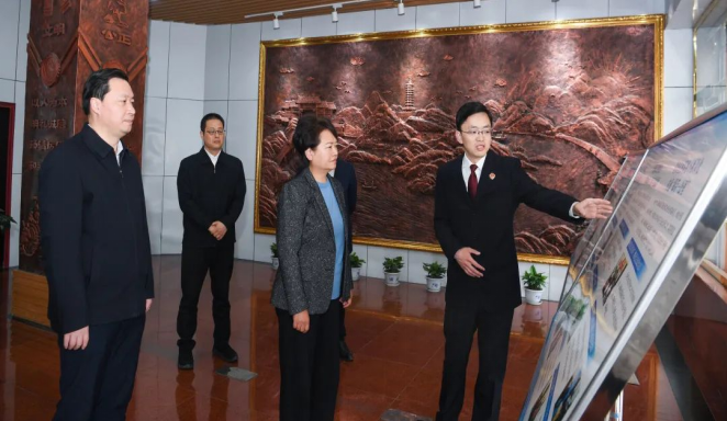 在廣安區(qū)、廣安市檢察院,葛曉燕看望基層檢察干警,實地查看檢察聽證室、調(diào)查指揮中心、智慧民行信息平臺、基層基礎(chǔ)建設(shè)等情況。