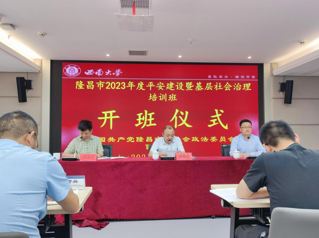 為進(jìn)一步提升隆昌政法工作現(xiàn)代化水平,5月15日上午,四川省隆昌市2023年平安建設(shè)暨基層社會(huì)治理培訓(xùn)班在西南大學(xué)順利開(kāi)班。該市市委常委、政法委書(shū)記楊礎(chǔ)瑞出席開(kāi)班儀式并作動(dòng)員講話,西南大學(xué)人工智能學(xué)院黨委書(shū)記夏俊致歡迎辭,各鎮(zhèn)(街道)政法委員、社治辦主任,政法干警,相關(guān)市級(jí)部門(mén)領(lǐng)導(dǎo)和業(yè)務(wù)骨干參加本期培訓(xùn)班。