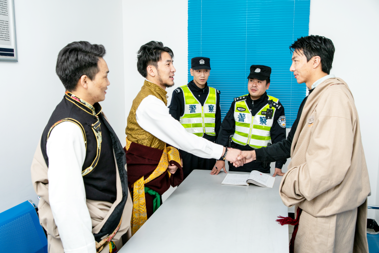 為了尊重藏族習(xí)俗,派出所的民警標(biāo)配是“四個一”:包里隨時裝著一條哈達(dá)、一塊茶磚,見面一句藏語問候,轄區(qū)至少交一個藏族朋友。所里會說藏語、懂得習(xí)俗的“雙語警官”逐漸多了起來,他們奔走在街區(qū)、院落、醫(yī)院,遇到矛盾糾紛時,用鄉(xiāng)音鄉(xiāng)情化解于無形,用象征感情的白色哈達(dá)換回了象征尊重的黃色哈達(dá)。