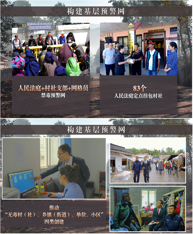借鑒“楓橋經(jīng)驗(yàn)”,構(gòu)建“人民法庭+村社支部+網(wǎng)格員”禁毒預(yù)警模式,全州83個(gè)人民法庭定點(diǎn)掛包村社、包干到人,定期走村入戶教導(dǎo)群眾防毒,培訓(xùn)督導(dǎo)網(wǎng)格員落實(shí)毛發(fā)、污水檢測(cè),從源頭上預(yù)防和減少涉毒違法犯罪,推動(dòng)“無(wú)毒村(社)、鄉(xiāng)鎮(zhèn)(街道)、單位、小區(qū)”四類創(chuàng)建。