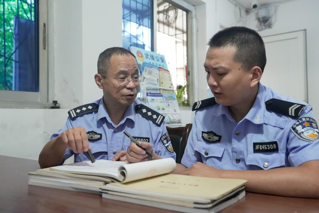 10月1日早會完畢,老葛就和徒弟萬訊開始“盤貨”,從臺賬到筆錄,一個(gè)“拎重點(diǎn)”、一個(gè)“記筆記”?!白錾鐓^(qū)民警,沒別的,就是勤快點(diǎn)、仔細(xì)點(diǎn),轄區(qū)里的人口、出租房、單位,每日的警情,什么時(shí)候你不看本子不看電腦,隨時(shí)隨地都能說出來,你就真的出師了......”老葛一邊給萬訊交代著,一邊跨上了他的電瓶車,風(fēng)風(fēng)火火地趕往棕南社區(qū),開展節(jié)日期間消防安全防范宣傳。