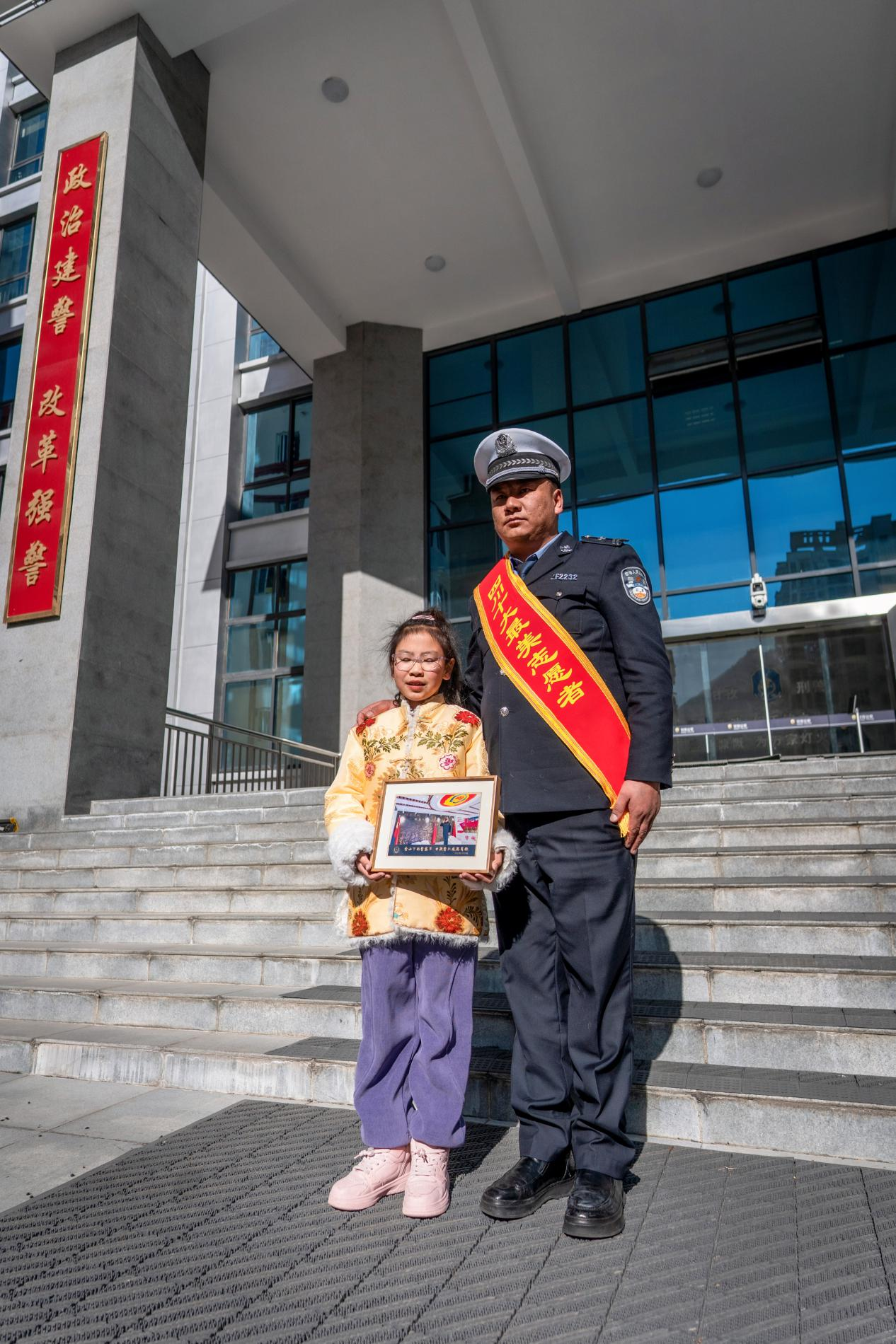“我的爸爸是個好人、是活雷鋒,他是我的驕傲!”父母是孩子最好的榜樣。眼下,在他的帶領(lǐng)下,8歲的女兒也開始參與到愛心之路。1月10日警察節(jié)當(dāng)天,其品學(xué)兼優(yōu)女兒登臺講述父親的故事贏得了大家的敬意。(楊志軍)