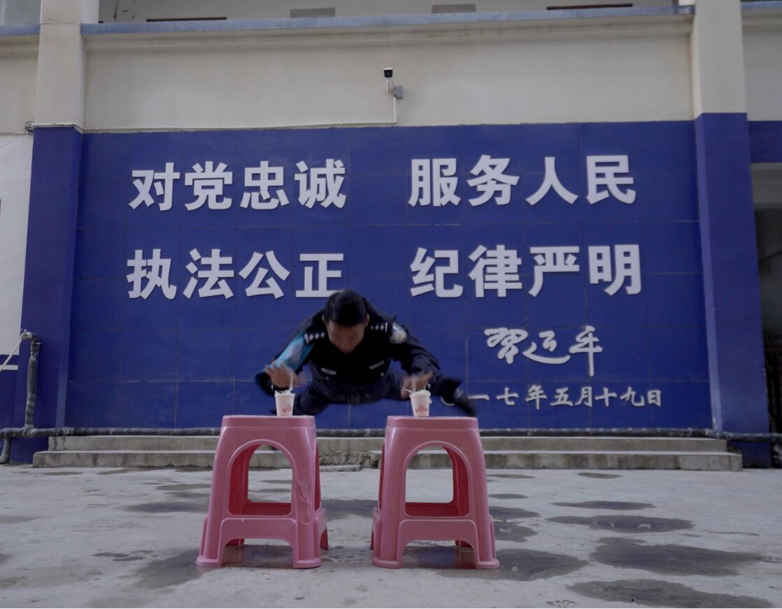 近日,四川省甘孜州白玉縣公安局蓋玉派出所副所長(zhǎng)伍金多吉挑戰(zhàn)高難度“蜻蜓點(diǎn)水”俯臥撐。在凳子上紙杯里放一杯水,他在雙腳懸空做俯臥撐的同時(shí),還用手去點(diǎn)杯子里的水,讓人嘆為觀止,被譽(yù)為俯臥撐界的天花板。