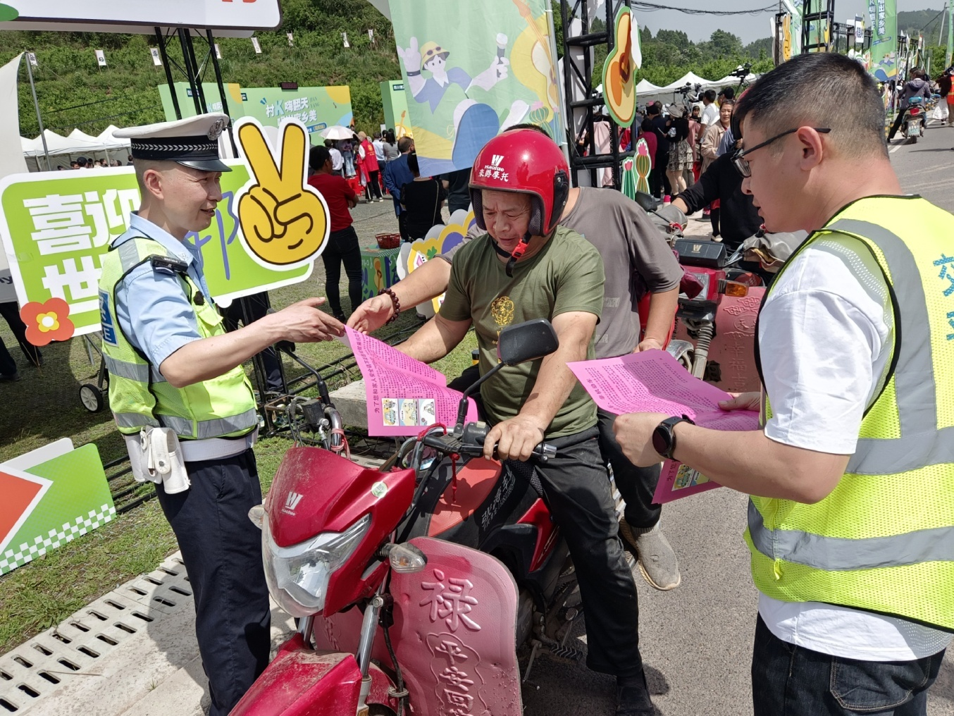“大叔,您好!鄉(xiāng)村道路駕駛電動車請一定登記上戶,正確佩戴安全頭盔哈,這是交通安全宣傳資料,請收好仔細閱讀?!?/p>