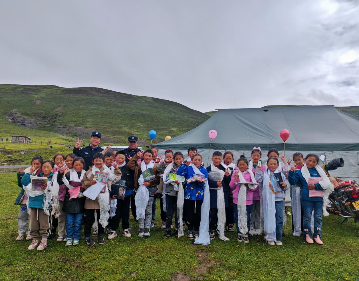 據(jù)拉巴介紹,德格縣岳巴鄉(xiāng)阿木拉小學(xué)是一個(gè)村小,孩子們讀到三年級(jí)以后就要轉(zhuǎn)到馬尼干戈中心校就讀。這一屆的27名學(xué)生剛完成期末考試,老師們想組織孩子們以“耍壩子”的形式慶祝在阿木拉小學(xué)生涯的“畢業(yè)”典禮。從小在大山里長(zhǎng)大的拉巴聞?dòng)嵑?,主?dòng)表示參加當(dāng)日活動(dòng),并掏錢為孩子們精心準(zhǔn)備了短袖、水果等禮物,并還帶去了愛(ài)心人士捐贈(zèng)的書籍和衣服,和同事一起驅(qū)車60多公里趕到阿木拉夏季牧場(chǎng),送去一份警察叔叔的祝福,見證孩子們不一樣的“畢業(yè)”典禮。