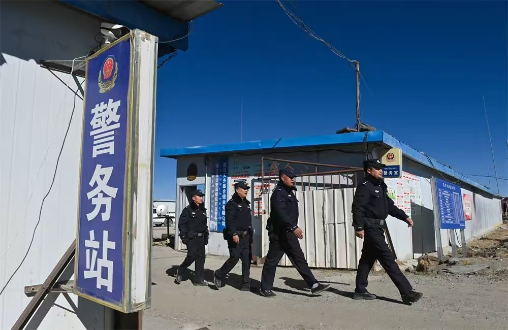 為了打造平安礦區(qū),雅江縣公安局主動前移警務,2020年,在海拔4540米的鋰礦勘探區(qū)域建成并投入運行了瓦多派出所措拉礦山警務站,轄區(qū)覆蓋周邊的3個施工企業(yè)和1個村,常態(tài)化部署2名民警、4名輔警開展工作。警務站成立后,駐勤民輔警在礦區(qū)重點部位、治安形勢復雜區(qū)域、進出山口要道等部位設立執(zhí)勤崗位。開展打擊盜竊、破壞工程設施,矛盾糾紛化解,利企便民服務,法治宣傳等工作,及時處置各類警情、受理各類報警求助,擔負起了為企業(yè)開發(fā)建設護航的職責。