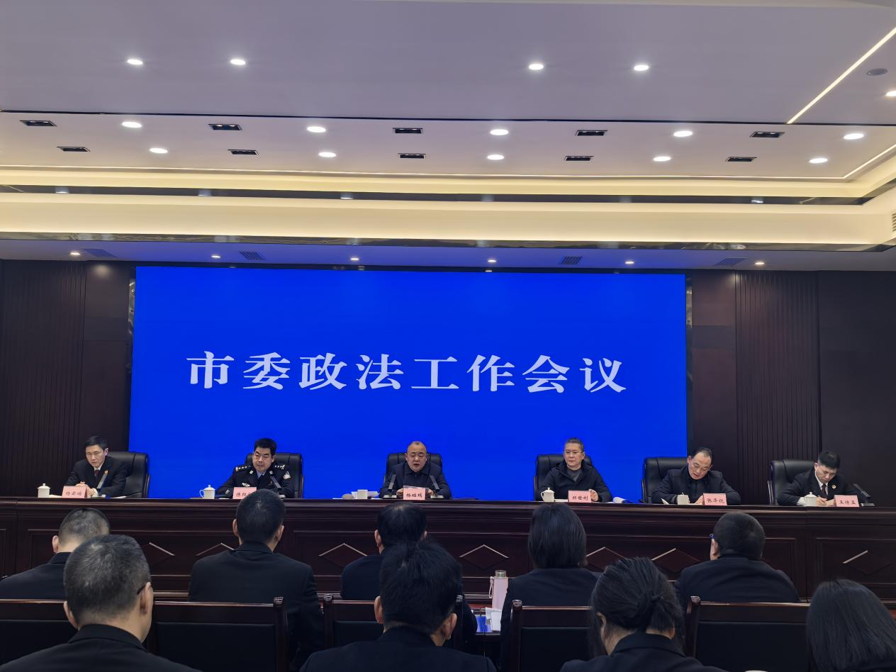 會(huì)議要求,要把牢政治方向,堅(jiān)持黨對(duì)政法工作絕對(duì)領(lǐng)導(dǎo),嚴(yán)格落實(shí)《中國共產(chǎn)黨政法工作條例》,統(tǒng)籌基層力量,推動(dòng)中央、省委、內(nèi)江市委及隆昌市委重要決策部署在政法系統(tǒng)落地落實(shí);要筑牢安全屏障,堅(jiān)決維護(hù)社會(huì)大局安全穩(wěn)定,全力捍衛(wèi)國家政治安全,開展反邪教警示教育活動(dòng),維護(hù)校園安全穩(wěn)定,推進(jìn)信訪工作法治化,開展信訪積案化解攻堅(jiān)行動(dòng),推動(dòng)重大不穩(wěn)定因素動(dòng)態(tài)排查化解,加強(qiáng)鐵路矛盾糾紛調(diào)處,確保社會(huì)大局和諧穩(wěn)定;要夯實(shí)平安根基,聚力打造更高水平的平安隆昌,加快推進(jìn)綜治中心規(guī)范化建設(shè),完善落實(shí)川渝邊界聯(lián)調(diào)聯(lián)治聯(lián)席會(huì)議制度,深化“化解矛盾風(fēng)險(xiǎn) 維護(hù)社會(huì)穩(wěn)定”專項(xiàng)治理,開展社會(huì)治安綜合治理攻堅(jiān)行動(dòng)和“重點(diǎn)群體管理服務(wù)提升年”行動(dòng),扎實(shí)辦好“4+1”政法為民實(shí)事,常態(tài)化開展掃黑除惡斗爭(zhēng),堅(jiān)持打防并重、懲防并舉治理突出違法犯罪問題;要堅(jiān)持法治引領(lǐng),穩(wěn)步推進(jìn)法治建設(shè)提質(zhì)增效,推進(jìn)嚴(yán)格執(zhí)法,堅(jiān)持公正司法,強(qiáng)化執(zhí)法司法監(jiān)督,深化政法領(lǐng)域改革,加快推進(jìn)隆昌石牌坊法治文化教育基地建設(shè);要聚焦重點(diǎn)領(lǐng)域,全力護(hù)航經(jīng)濟(jì)社會(huì)健康發(fā)展。開展“規(guī)范涉企執(zhí)法提升年”活動(dòng)和“市場(chǎng)環(huán)境提升、監(jiān)管執(zhí)法提優(yōu)、涉企司法提效、公共法律服務(wù)提能、知識(shí)產(chǎn)權(quán)保護(hù)提質(zhì)、為訴訟人減負(fù)”六大行動(dòng),提升依法行政能力,完善警企聯(lián)系機(jī)制,深入推進(jìn)府院聯(lián)動(dòng)機(jī)制有效運(yùn)行,持續(xù)優(yōu)化法治化營商環(huán)境;要狠抓隊(duì)伍建設(shè),持續(xù)鍛造隆昌新時(shí)代政法鐵軍。開展“強(qiáng)忠誠、善制勝、敢擔(dān)當(dāng)”大比武和政治理論、業(yè)務(wù)技能、警務(wù)實(shí)戰(zhàn)、體能素質(zhì)“大練兵”,扎實(shí)做好內(nèi)江市委提級(jí)巡察反饋問題整改,在政治建警、從嚴(yán)治警、能力強(qiáng)警、厚愛暖警、作風(fēng)塑警上抓實(shí)抓細(xì),鍛造“忠誠、為民、公正、智勇”的隆昌政法鐵軍。