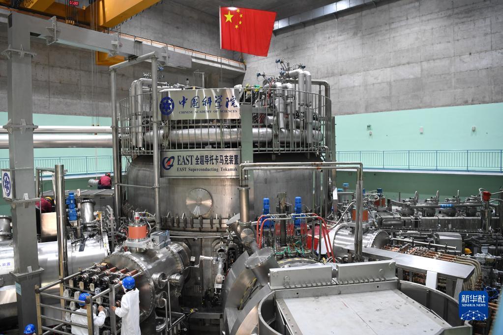 在中科院合肥物質(zhì)科學研究院,工作人員對有“人造太陽”之稱的全超導托卡馬克核聚變實驗裝置(EAST)進行升級改造(2021年4月13日攝)。新華社記者 劉軍喜 攝