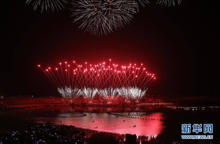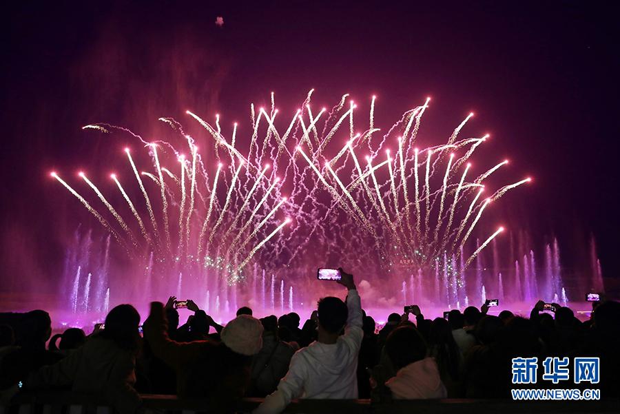1月31日晚,煙花光影水秀在天河潭景區(qū)上演。新華網 盧志佳 攝