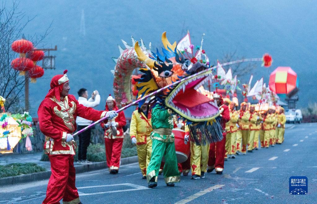 當(dāng)日,浙江省杭州市淳安縣里商鄉(xiāng)舉行2023元宵節(jié)花燈巡游,為當(dāng)?shù)厣洁l(xiāng)增添了熱鬧的元宵氛圍。
