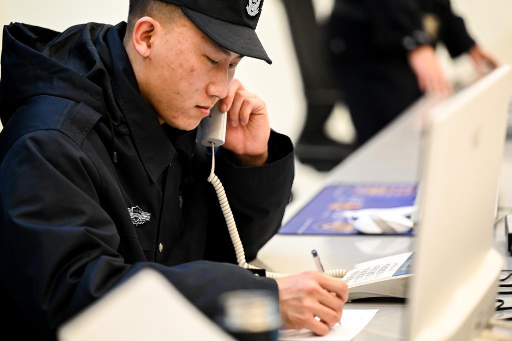2月5日,通遼市奈曼旗公安局大沁他拉派出所民警們在分流警情。