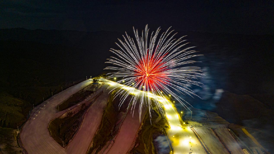 2月5日,馬鬃山滑雪場上演大型雪地?zé)熁ㄐ?,吸引了大量游客觀看。(無人機(jī)照片)新華網(wǎng)發(fā) (樂炎 攝)