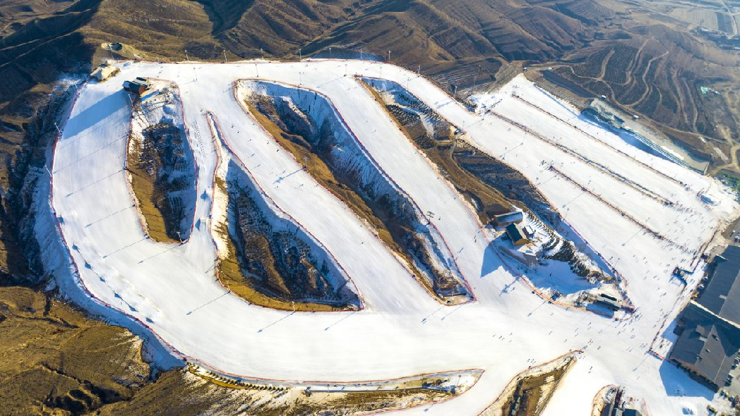 這是2月5日拍攝的呼和浩特馬鬃山滑雪場全景。(無人機(jī)照片)新華網(wǎng)發(fā)(樂炎 攝)