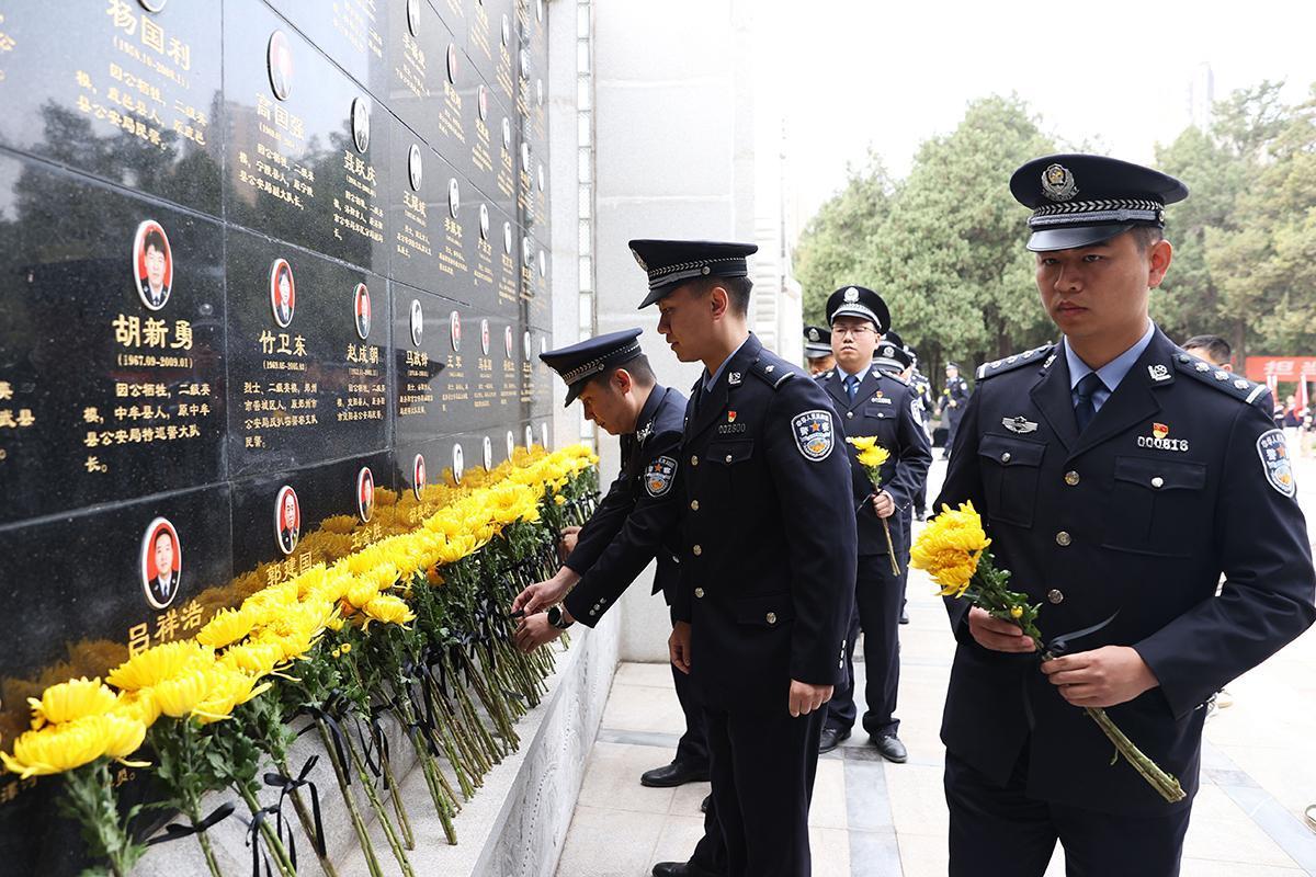 3月31日,河南省公安廳機關青年民警代表120余人來到鄭州烈士陵園河南公安英烈紀念廣場開展清明祭英烈活動。全省公安民警牢記宗旨使命,忠誠履職盡責,勇于擔當作為,甘于犧牲奉獻,僅2022年以來,全省公安機關就有30名民警為公安事業(yè)獻出了寶貴的生命。圖為民警敬獻鮮花。