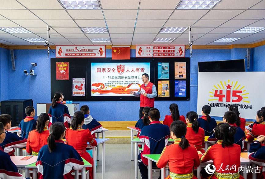 4月12日,呼和浩特市玉泉區(qū)公安分局警支大隊民警向?qū)W生宣講國家安全相關(guān)法律法規(guī)知識。丁根厚 攝