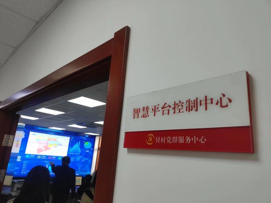 “各位現(xiàn)在看到的就是電腦端的一個界面,屏幕的中間是我們付村的一個平面圖,下面展示的是人口組成……”在付村的智慧平臺控制中心,工作人員站在一塊藍(lán)色屏幕前對記者進(jìn)行講解。