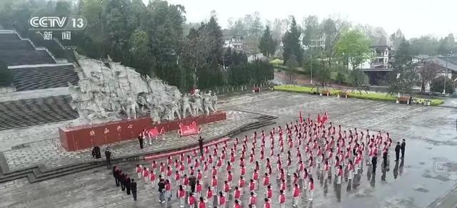 在川陜革命根據(jù)地紅軍烈士陵園,少先隊(duì)員們?yōu)闊o名烈士敬獻(xiàn)紅領(lǐng)巾,并用為無名墓碑上的紅星描紅補(bǔ)色的方式,寄托對(duì)革命先烈的哀思。